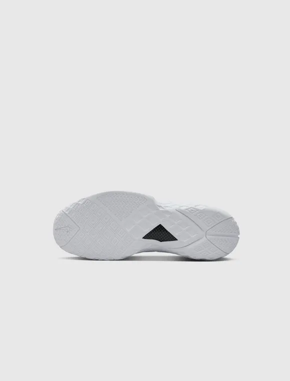 High top sneakers. Mesh upper. Synthetic web overlays on the side panels. Leather overlays around the toe, and heel counter. Padded leather tongue with a debossed logo at the center. Front lacing. Rubber midsole with zoom cushioning. Rubber outsole. Leather, and synthetic textile upper